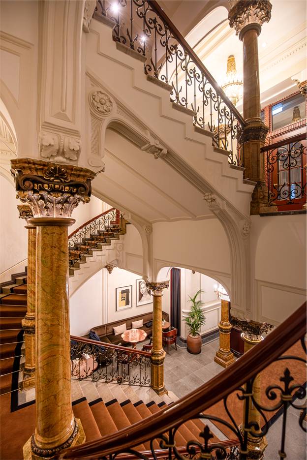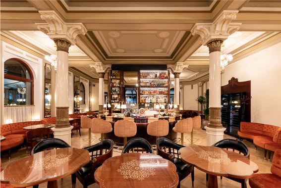 The design, led by Archer Humphryes Architects, reflects the studio’s long-standing provenance in placemaking within historic buildings, where heritage becomes the foundation for new experience. Here, the vision brings together what press coverage describes as “the elegance of Neoclassicism, the organic sensuality of Art Nouveau and the optimism of the Belle Époque,” weaving restored architectural character with refined contemporary detail. Polished mahogany, marble, satin brass and soft velvets create a layered material palette that feels both grand and intimate. A standout feature is the Winter Garden terrace, a glassed-in space overlooking Esplanade Park that is fully openable in summer, allowing the brasserie to spill out into the city’s most iconic promenade and creating a seamless connection between interior elegance and Helsinki’s outdoor life.