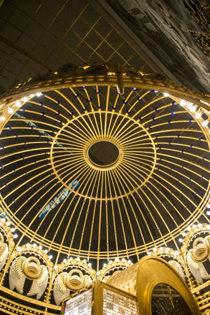 We drew direct inspiration from this church when designing the interior of the Sans Souci hotel in Vienna recently. We were able to use the same hanging lights in the café, which are amazingly still in production, and also borrowed the idea of the fluted walls and stone datum for the restaurant. Our lobby floor has a decorative marble inlay and we’ve used plenty of gold tracery in the bedrooms for floral motifs. The joinery at the church has been a reference both for the Vienna hotel and our Chiltern Street hotel project in London.